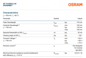 – Photon Flux Efficacy (@ 700mA): typ. 4.66 µmol/J @ 25°C; typ. 4.58 µmol/J @ 85°C